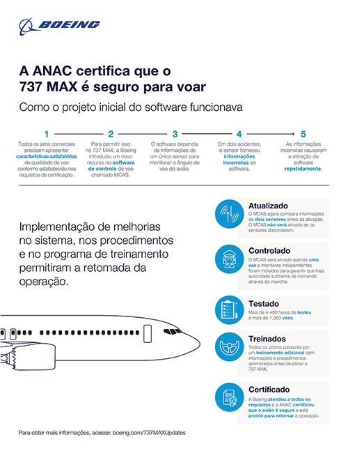 "Todos os dias nos lembramos, refletimos e nos dedicamos a garantir que acidentes como os que levaram à decisão de suspender as operações nunca mais aconteçam", disse David Calhoun, CEO da Boeing. “A Boeing trabalhou em estreita colaboração com a FAA e a ANAC para atender às suas expectativas de retomar as operações do 737 MAX com segurança no Brasil.”