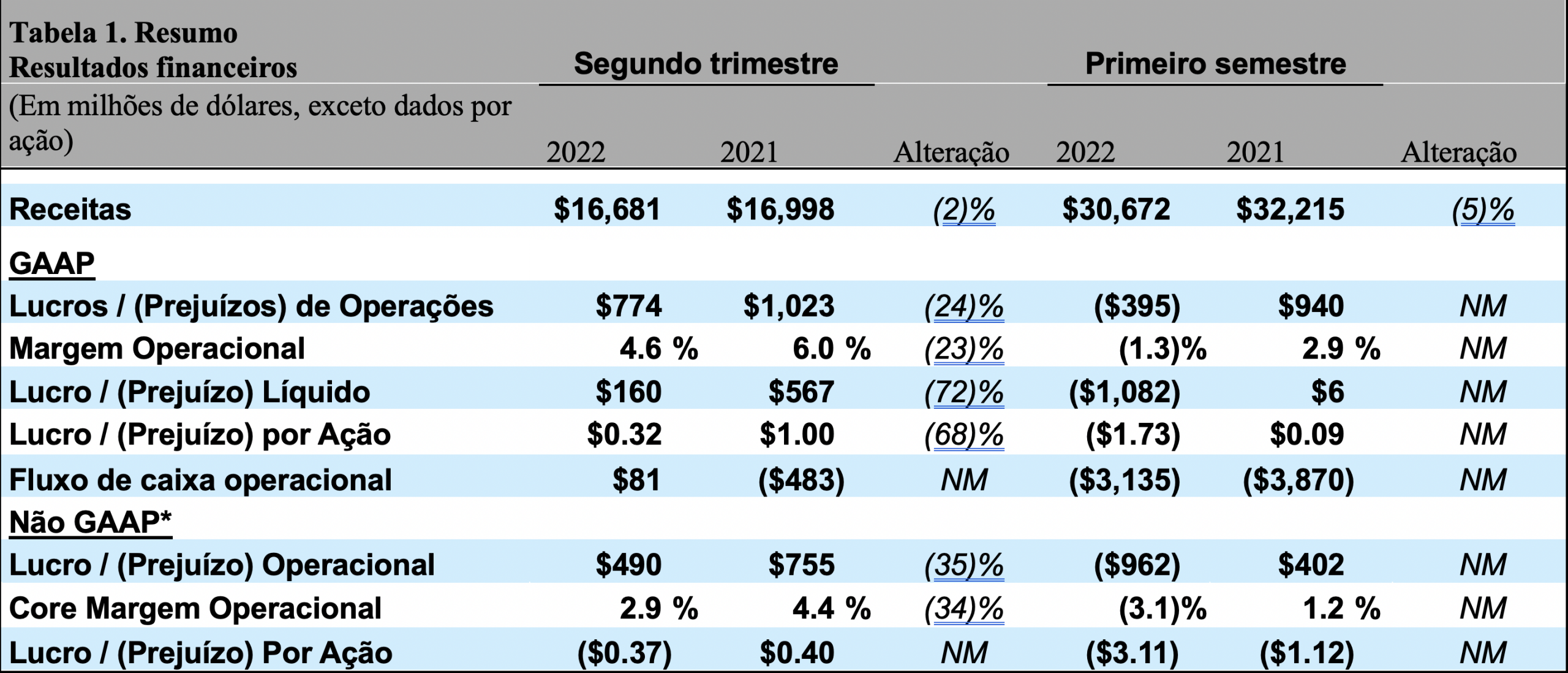 Complementamos o relato de nossas informações financeiras determinadas de acordo com os Princípios Contábeis Geralmente Aceitos nos Estados Unidos da América (GAAP) com certas informações financeiras não GAAP. As informações financeiras não GAAP apresentadas excluem certos itens significativos que podem não ser indicativos ou não relacionados aos resultados de nossas operações comerciais em andamento. Acreditamos que essas medidas não GAAP fornecem aos investidores uma visão adicional sobre o desempenho contínuo dos negócios da empresa. Essas medidas não GAAP não devem ser consideradas isoladamente ou como um substituto para as medidas GAAP relacionadas e outras empresas podem definir tais medidas de forma diferente. Incentivamos os investidores a analisar nossas demonstrações financeiras e relatórios arquivados publicamente na íntegra e não confiar em nenhuma medida financeira única. As seguintes definições são fornecidas:
